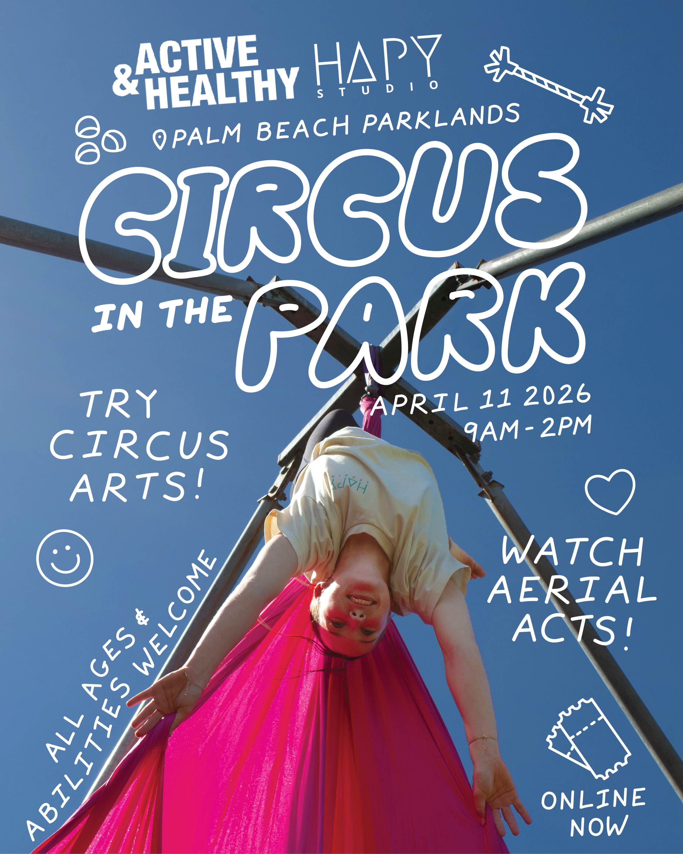 Bring your family and friends and enjoy a day of circus in Palm Beach Parklands. From 9am - 2pm enjoy free performances and workshops every hour.